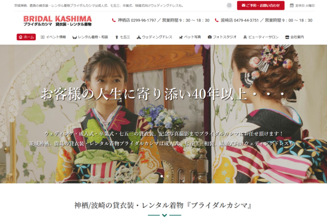 茨城神栖、鹿島の貸衣装・レンタル着物ブライダルカシマHPリニューアル