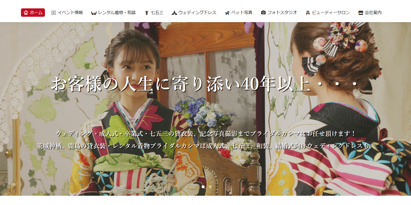 8月52022イベント情報新着情報茨城神栖、鹿島の貸衣装・レンタル着物ブライダルカシマHPリニューアルしました。 成人式、七五三、卒業式、結婚式向けウェディングドレスの新しいご提案も公開していきますので宜しくお願い致します。 Post navigationPreviousPrevious post:2022年もブライダルカシマ(神栖市・波崎市)をよろしくお願いいたしますNextNext post:2023年 成人式振袖・紋付袴展示会『ギフト券プレゼント中』